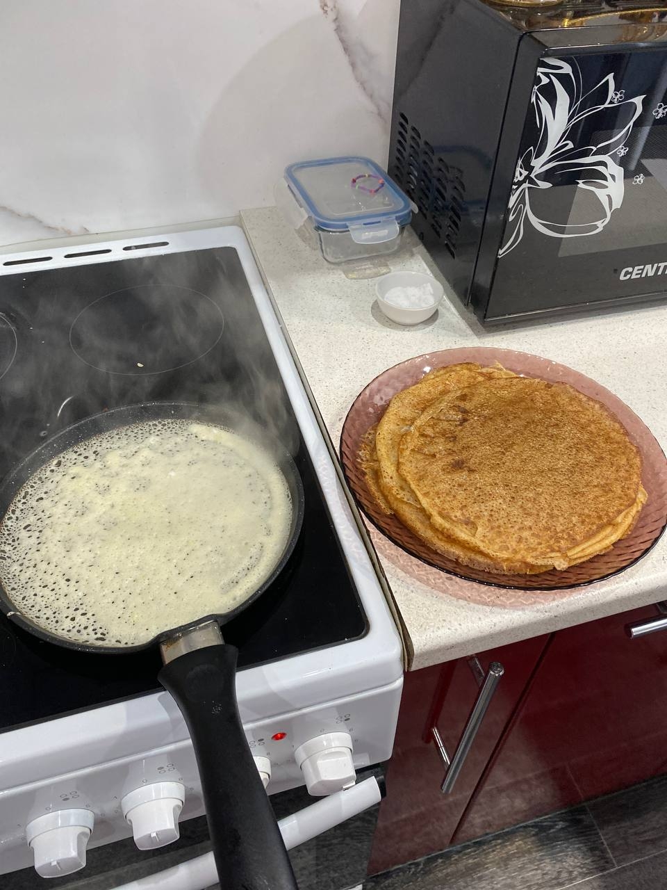 Готовка блинов на сковороде