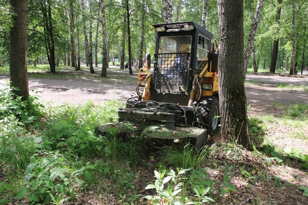 На фотографии траву косят с помощью специальной техники