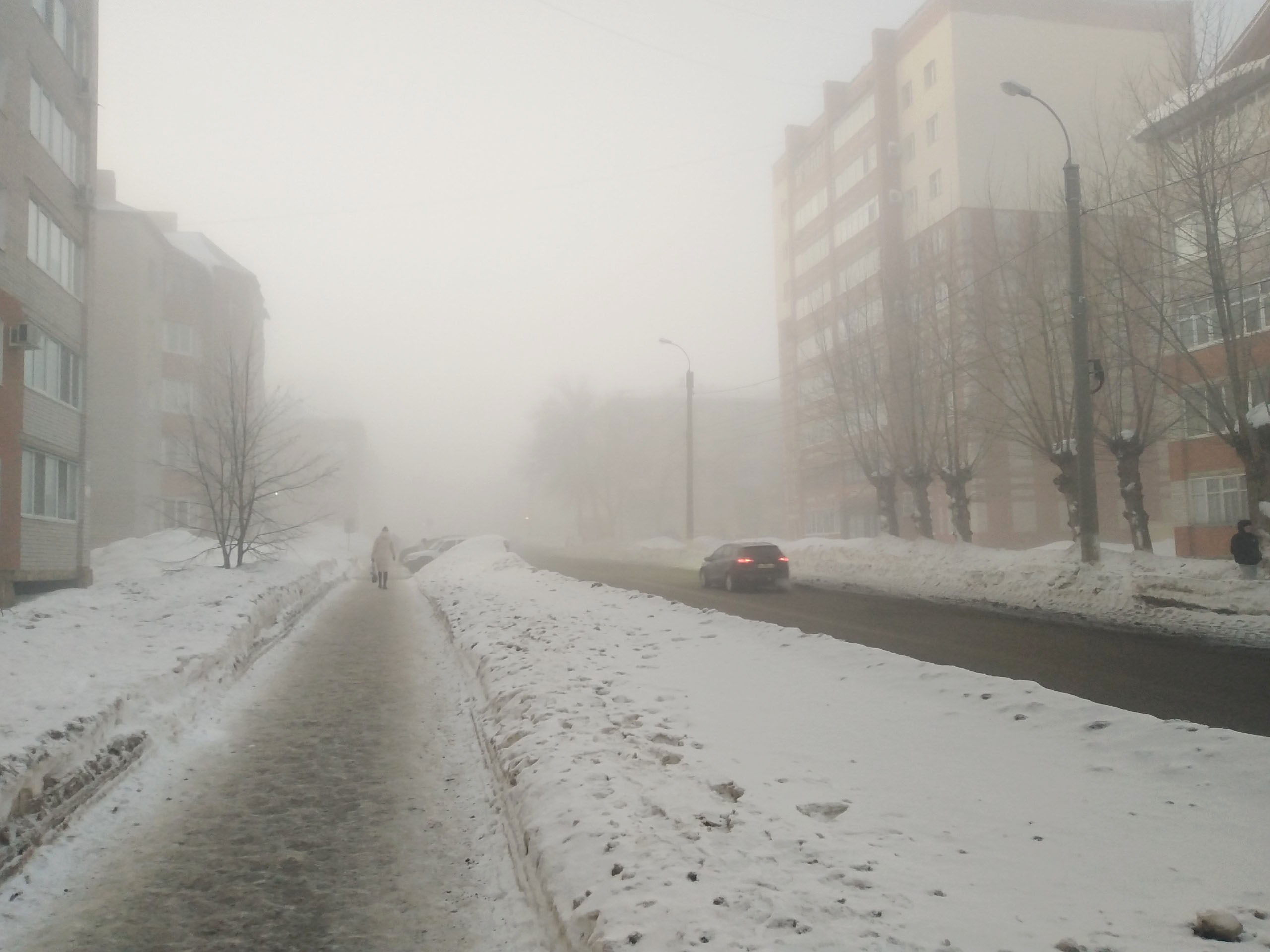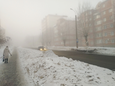 Фотографии зимнего города в тумане.