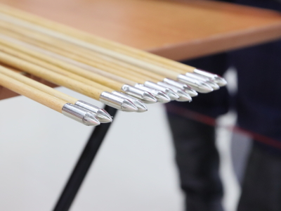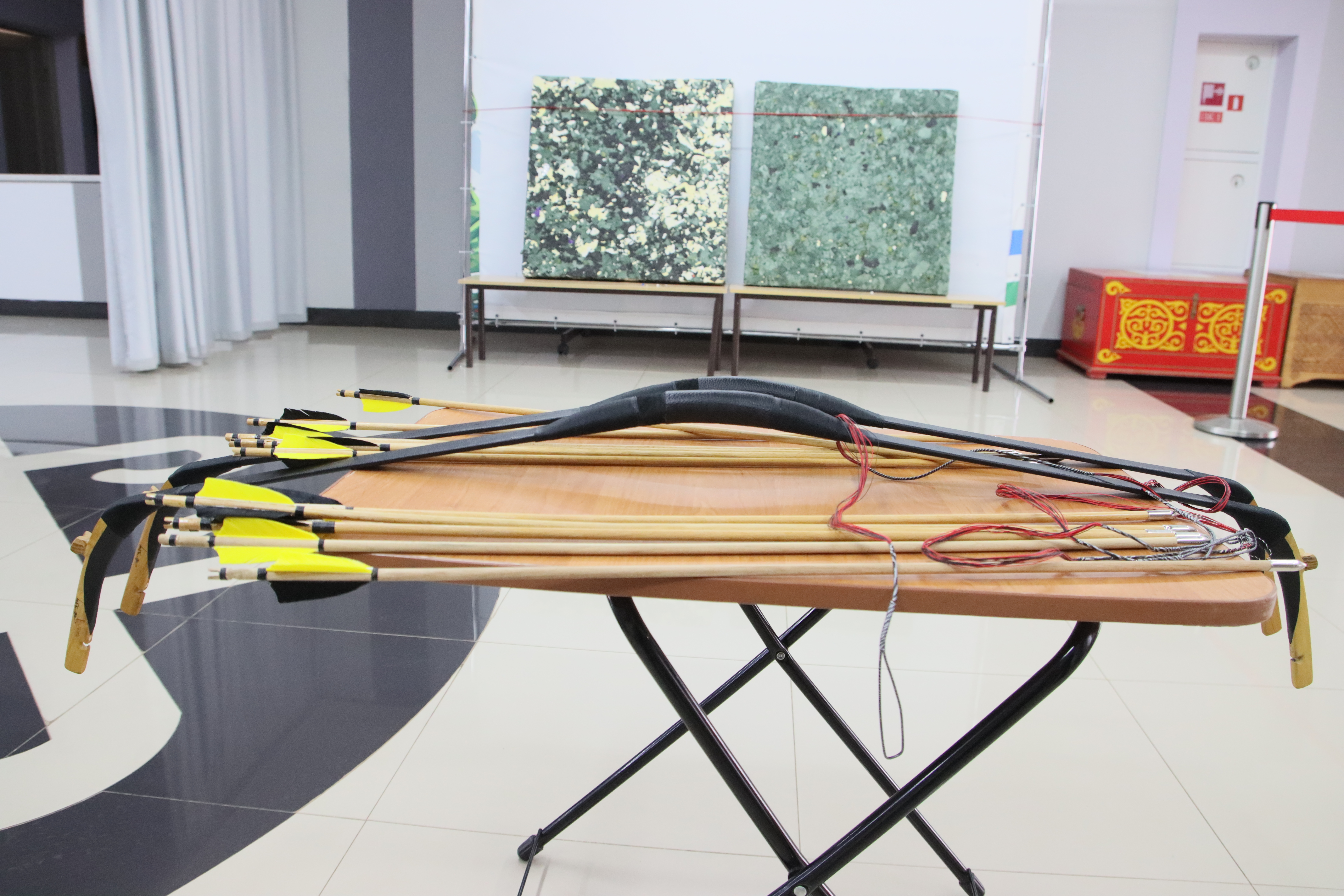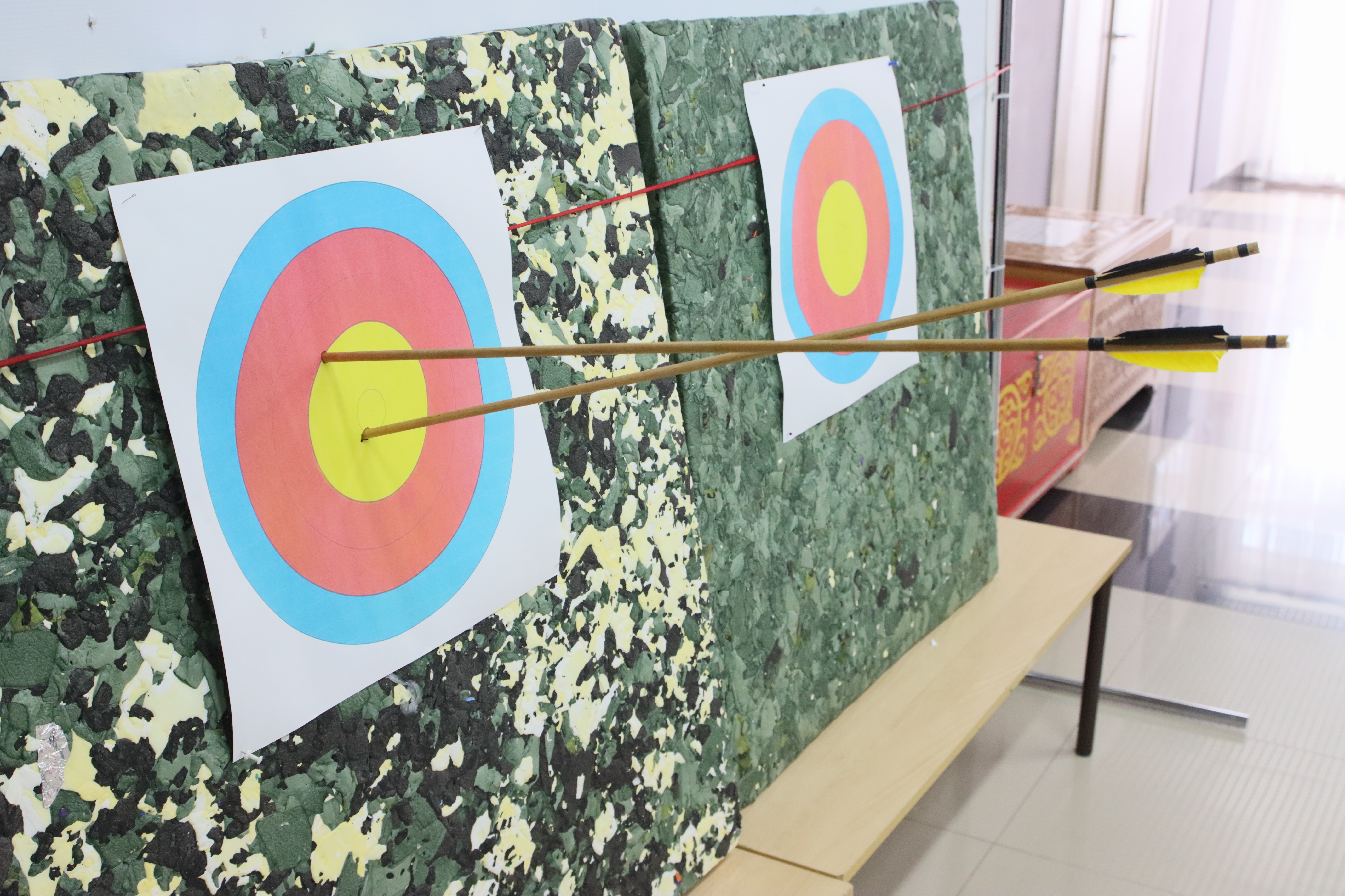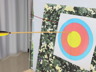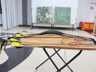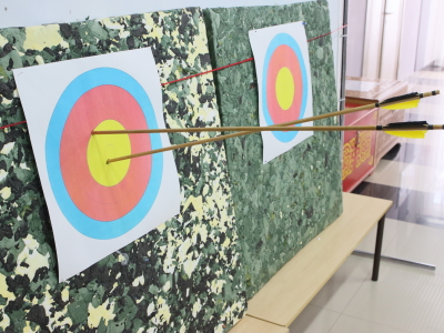 На фотографиях показаны лук, стрелы, наконечники для стрел, попадание в мишень.